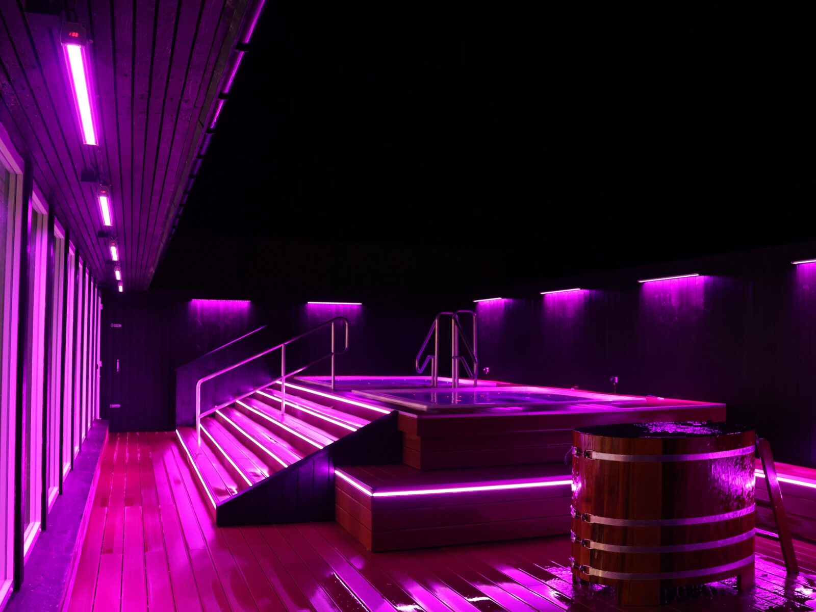 Í vælverurúminum eru hitapottar við vatnmassasju, ið mýkir vøddarnir. Hitapottarnir rúma umleið 7-8 persónum hvør. Hitin er 38 stig, og tað gevur kroppinum linna og vælveru.