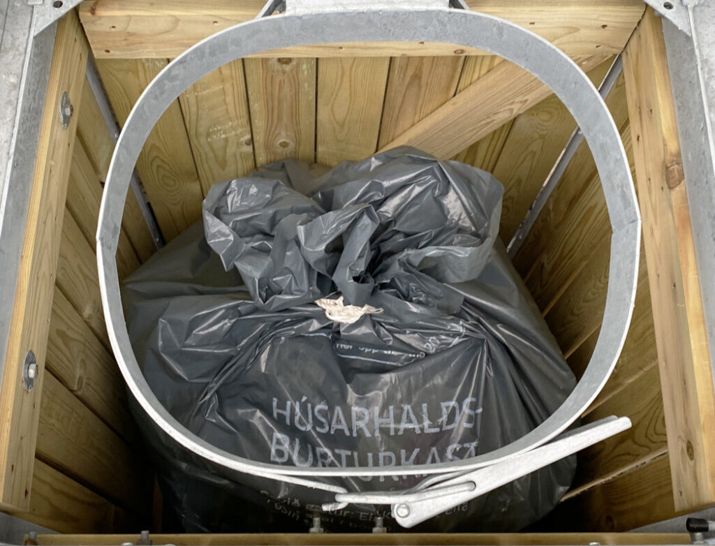 Snørið gráa posan við bandi ella teypi dagin fyri, hann verður heintaður. Posin skal framhaldandi vera í ruskstativinum, eftir at hann er bundin fyri. Nær verður posin heintaður? Sí meira her.
