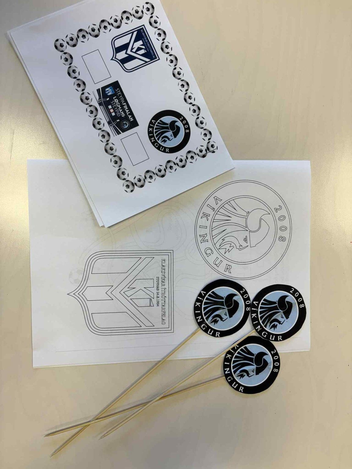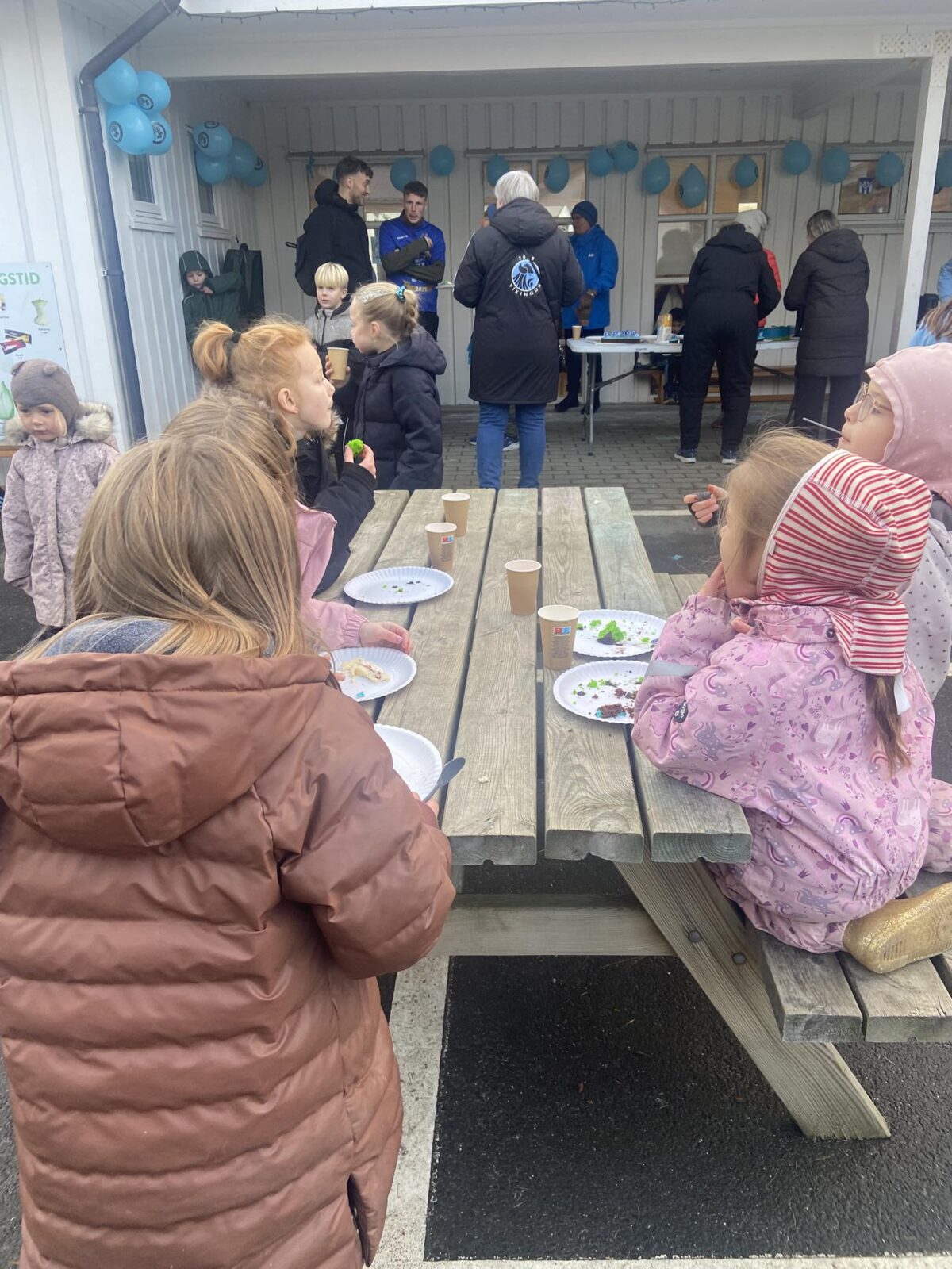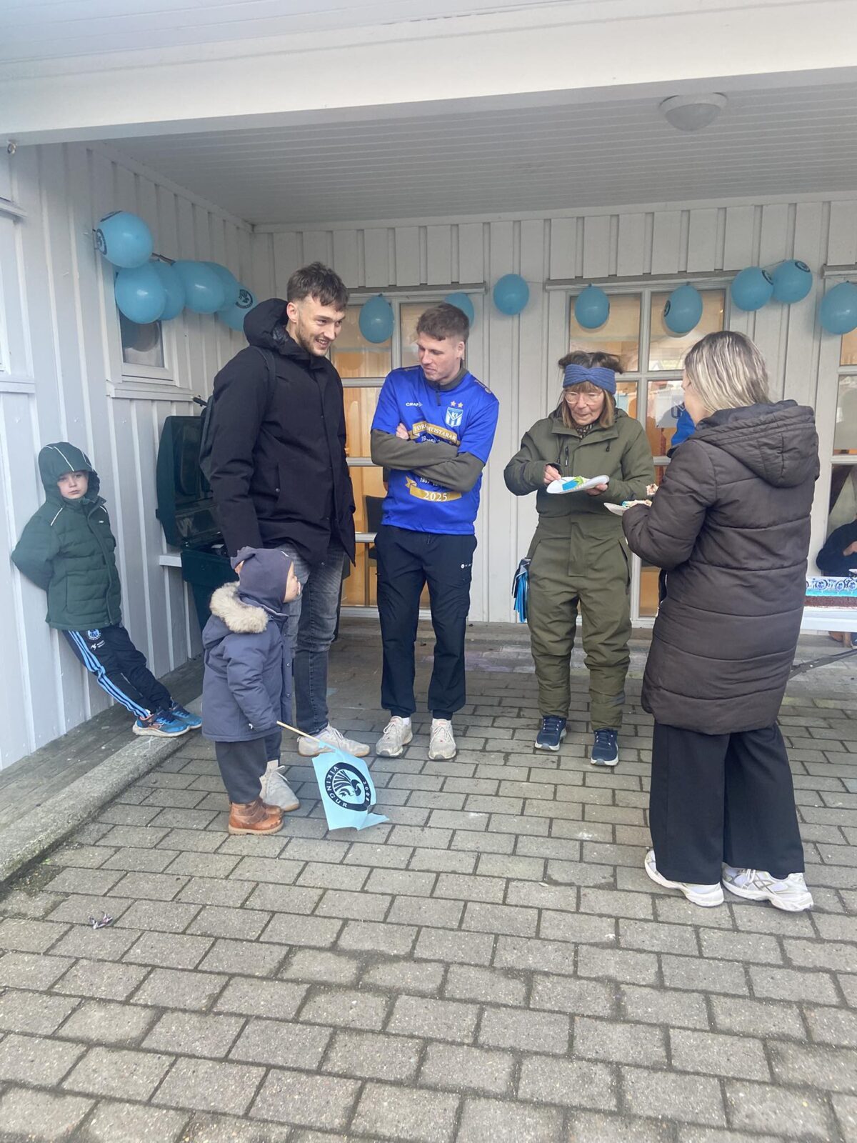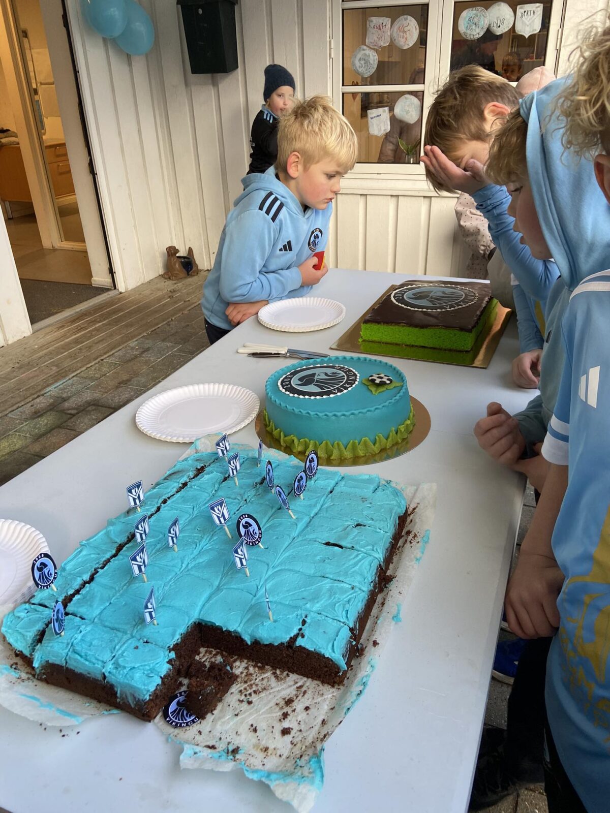 Ljósablá kaka stóð á borðinum og stemmningurin var í topp! Vit eru klár at rópa og ynskja Víkingi góða eydnu.