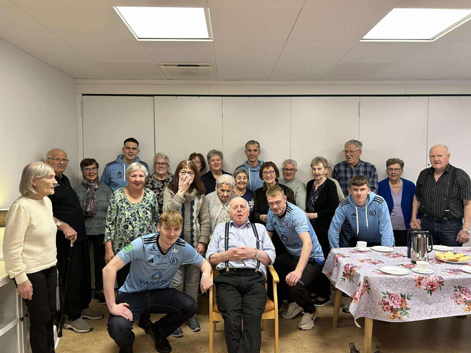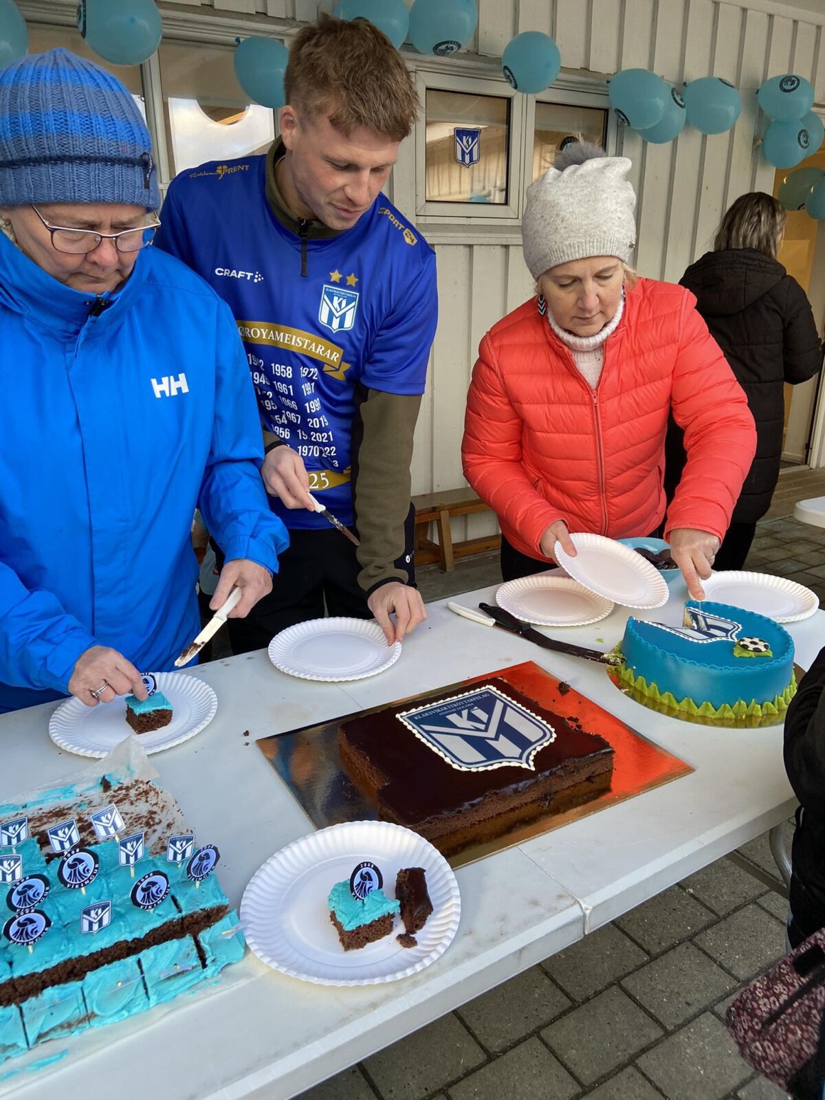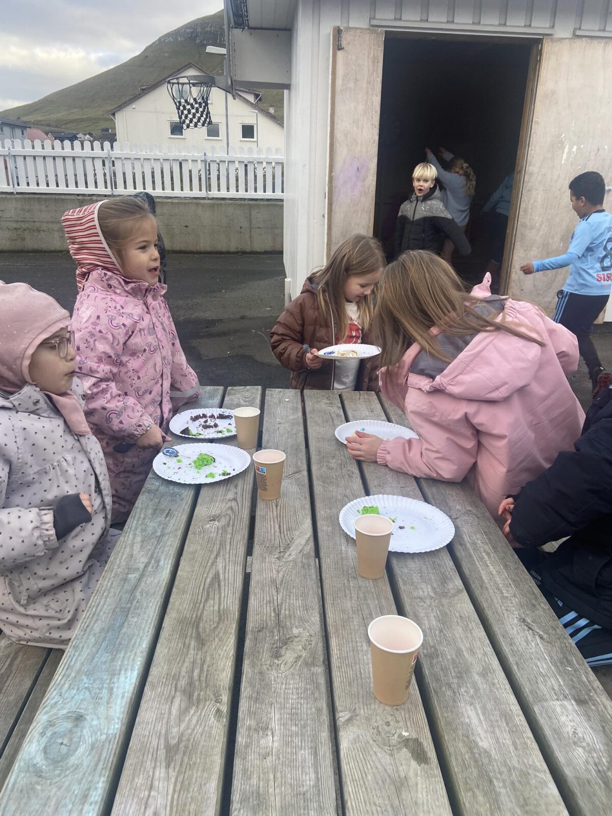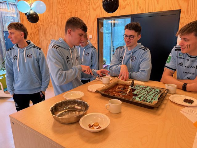 Ljósablá kaka stóð á borðinum og stemmningurin var í topp! Vit eru klár at rópa og ynskja Víkingi góða eydnu.