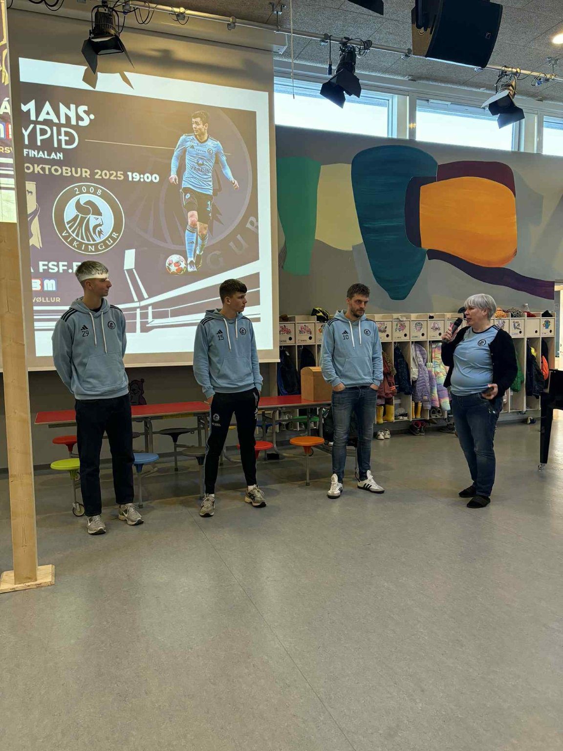 Vit fingu vitjan av trimum víkingaleikarum, sum allir hava gingið her í Skúlanum í Leirvík: Ingi Arngrímson, Arnór Brandson og Sølvi Vatnhamar.