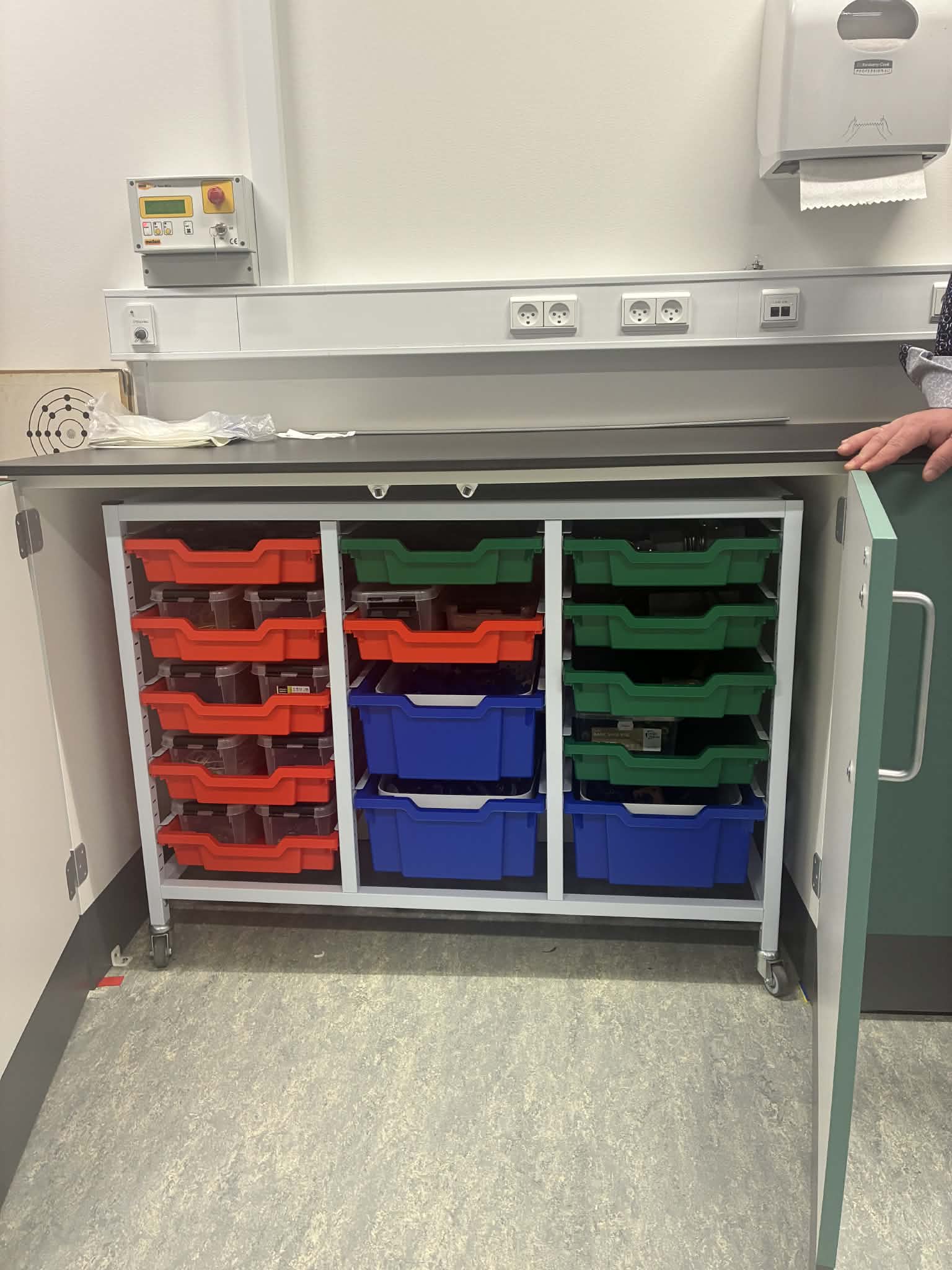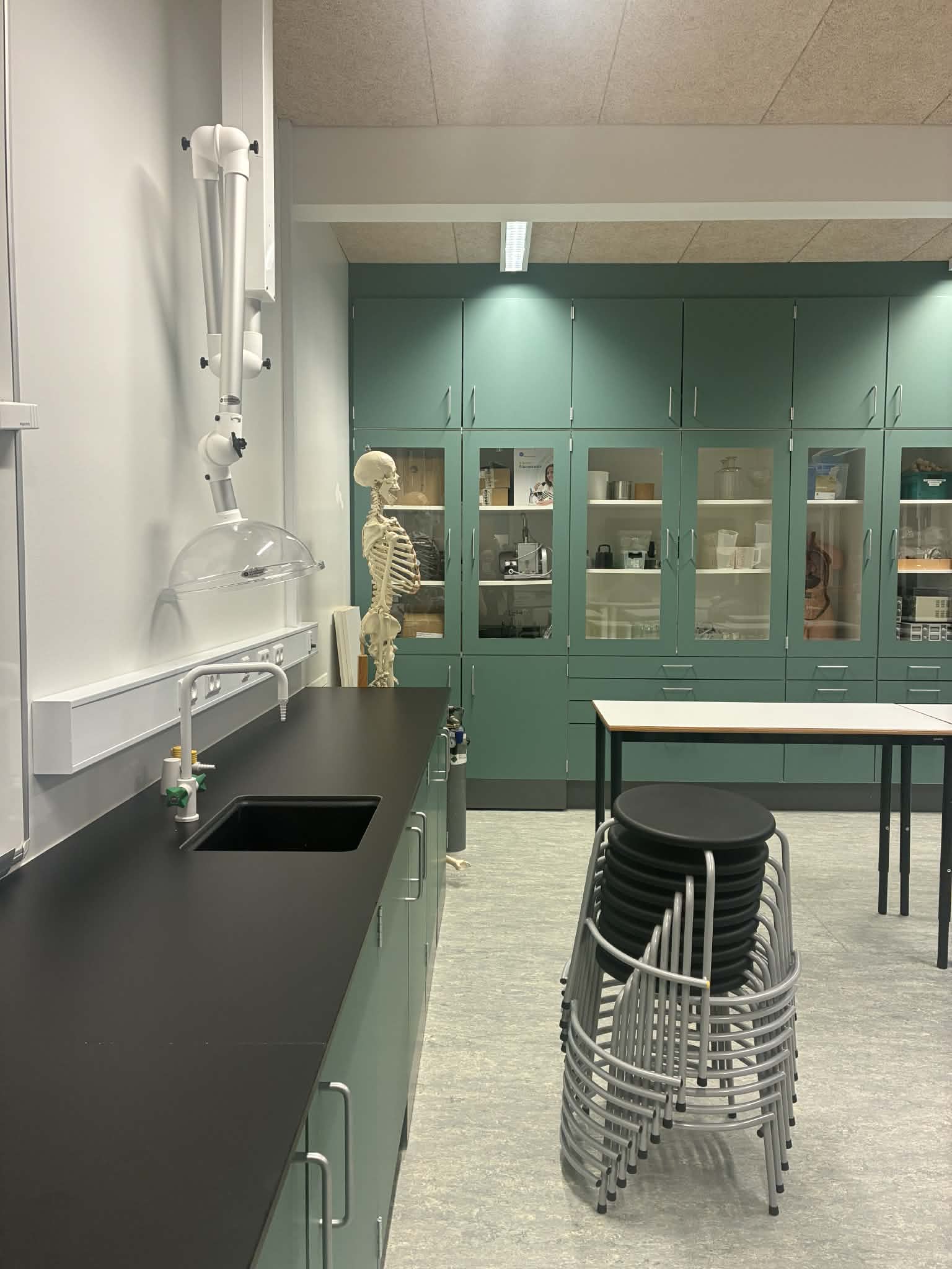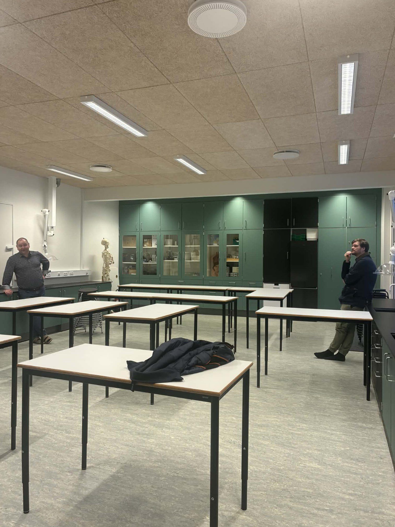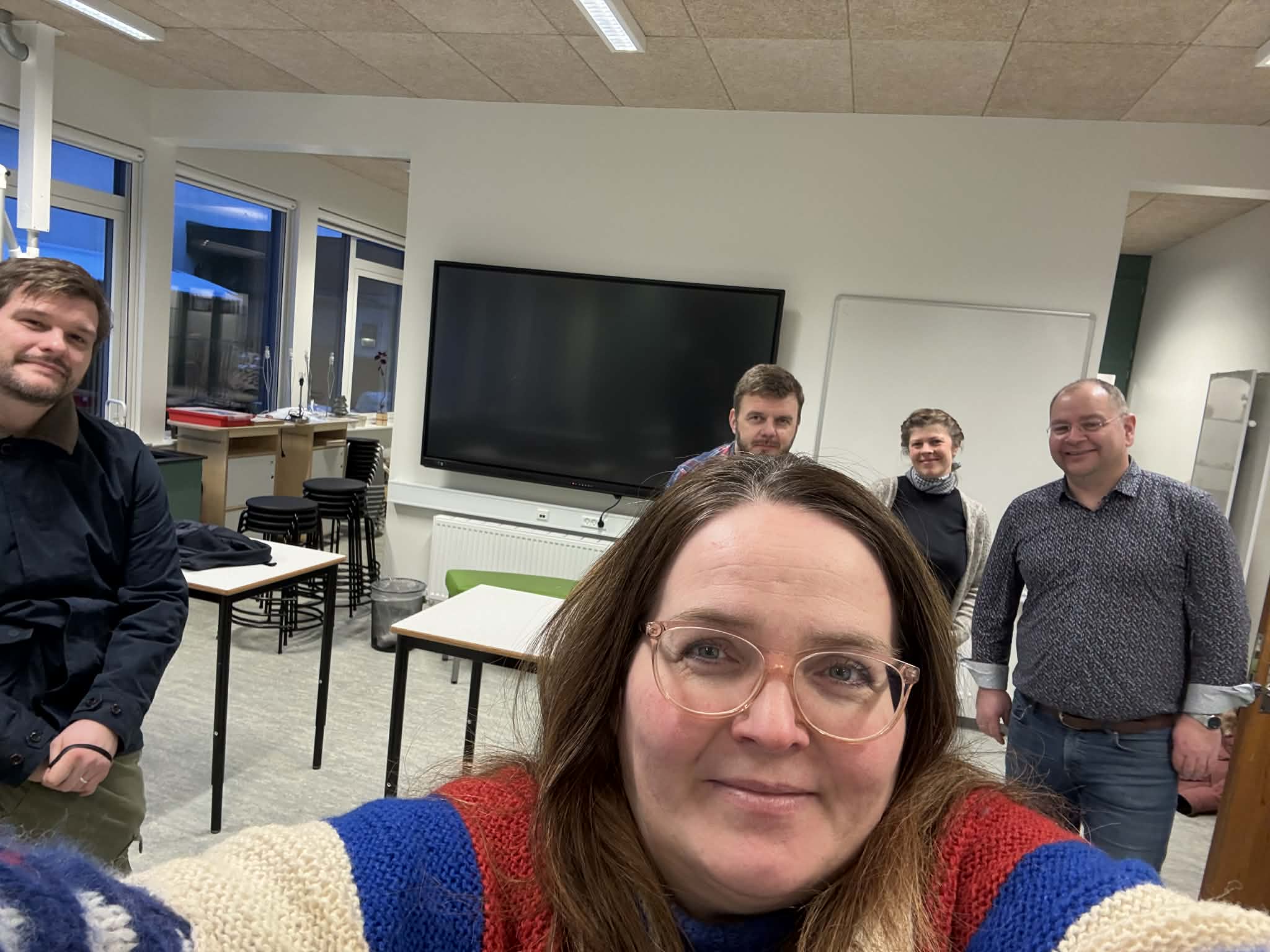 Tað var ein vøkur, væl útgjørd og fleksibul skúlastova, nevndarlimirnir og skrivari sóu, við nýggjum vindeygum, nýggjum innbúgvi í frískligum litum, við arbeiðsstøðum til næmingar, góðari útlufting, serskápum, borðum, sum kunnu setast saman á ymsan hátt, krakkum í ymsari hædd til ymsa nýtslu, nýggjum teldutalvum og hvíttalvum. Stutt sagt, so eru møguleikarnir fyri ymsum arbeiðshættum nú munandi bøttir, og stovan er fult tíðarhóskandi og innbjóðandi, sum tað sømir seg til hesar týdningarmiklu lærugreinir.